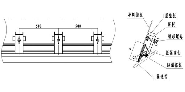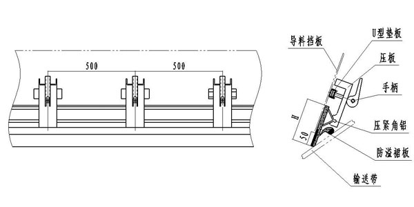 2、密封裙板高度可根據(jù)導料槽的實際尺寸適當調整。